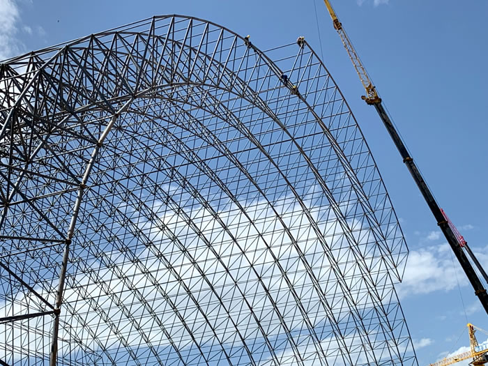 (2)网架加工前应对现场尺寸进行复测,确认无误后方可进行加工、安装;网架制作、运输、安装应遵守《空间网格结构技术规程》JGJ7-2010、《钢网架永安螺栓球节点》JG/T 10-2009、《钢网架永安螺栓球节点用高强度螺栓》 GB/T 16939-2016、《钢结构永安工程永安施工规范》 GB50755-2012、《钢结构永安工程施工质量验收标准》 GB50205-2020。